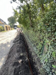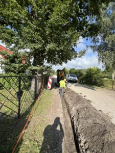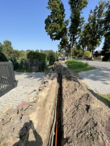 Auch naturschutzfachlich behalten wir die Umgebung im Blick: Wir prüfen während der Bauarbeiten fortlaufend auf Hinweise geschützter Arten und Habitatstrukturen und passen Zeitfenster oder Methoden an, wenn es der Artenschutz erfordert. Dank strukturierter Ortsbegehungen, gezielter Schachtlagen außerhalb der Kronentraufe und baubegleitender Boden- und Wurzelbeurteilungen konnten in mehreren Abschnitten keine relevanten Wurzeln festgestellt werden – ein Indiz für geeignete Trassenwahl und Bauverfahren.