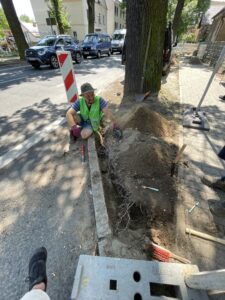 Bereits in den ersten Leistungsphasen identifizieren wir Konflikte zwischen Leitungsbau, Oberflächenentwässerung, Verkehrsflächen und Wurzelraum. Darauf aufbauend entwickeln wir umsetzungsreife Schutz- und Bauverfahren: abschnittsweise Handschachtung oder Saugbagger dort, wo Wurzeln zu erwarten sind, temporäre Stamm- und Kronenschutzmaßnahmen sowie eine trassensichere Führung von Ver- und Entsorgungsleitungen. So lassen sich Eingriffe minimieren, ohne die Funktionalität des Straßenraums zu beeinträchtigen.